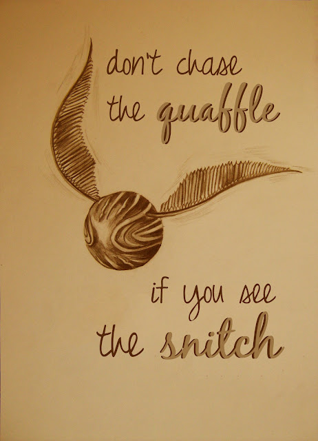 After perusing all of Priscilla’s beautiful typography art over at the readables, I wanted to make my own little print to frame using one of my favorite quotes from a fan fiction I read not too long ago.. yes, I read fan fiction. It’s the only thing I can do to satiate my need for stories of the marauders’ days at Hogwarts. Anyway, in the story I read, this quote was one that James Potter’s mother always told him as a child, “Don’t chase the quaffle if you see the snitch.” Great quote on life, yeah? It’s probably one of the first things I read out of a fan fiction that I’ve actually kept with me. Oh, and by the way, if anyone out there is a reader of Marauder Era fanfic, this was the story.