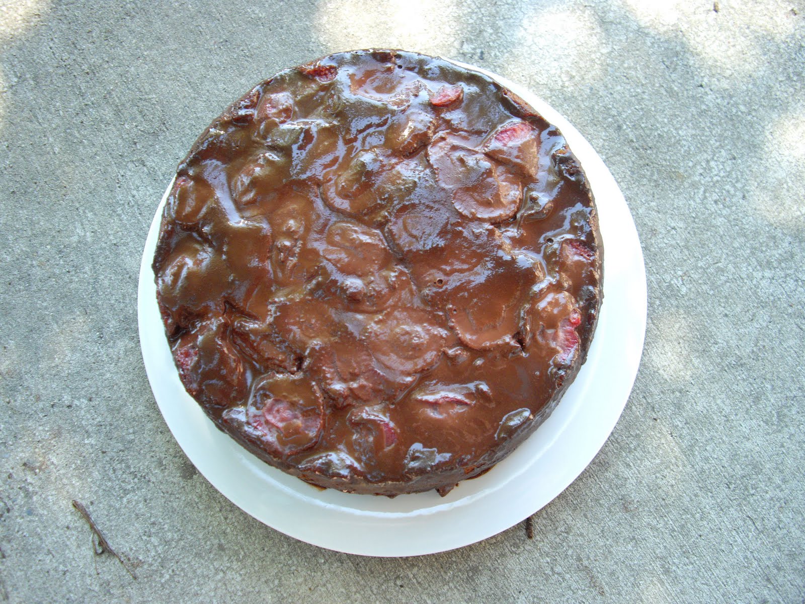 Chocolate Avocado Strawberry Upside Down Cake