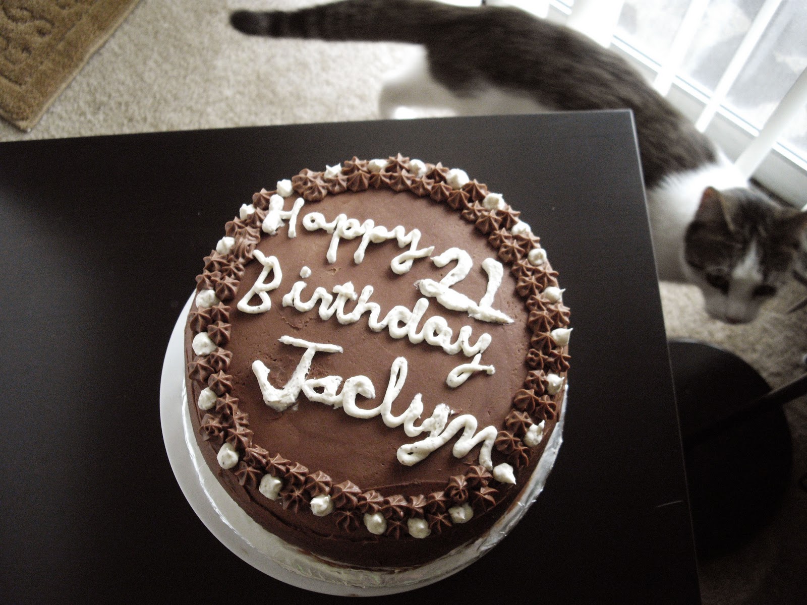 My friend, Jaclyn, had her 21st birthday on Thursday. We had a party for her Friday night, so of course I had to make a cake to celebrate! I immediately went to one of my favorite blogs, Sweetapolita, and went through all of Rosie’s delicious cake recipes to find one that sounded delicious and not too intimidating. Jaclyn’s only request for her cake was that it be some kind of chocolate, so I immediately honed in on the Campfire Delight cake. Dark chocolate cake with malted chocolate frosting and toasted marshmallow frosting? With six layers? Oh goodness.