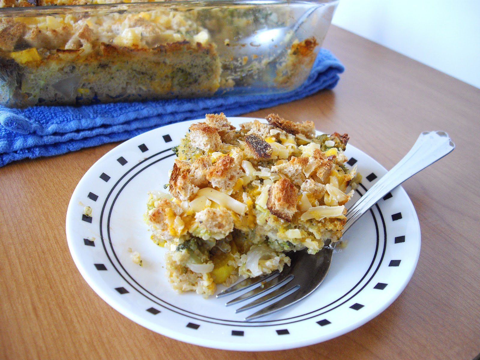 This casserole makes a good bit, so we had leftovers for a few days with just the two of us eating it, which works really well for us, so we don’t have to cook as much! It would be wonderful as a side dish at a family gathering, but it can also hold its own as the main meal for those busy weeknights, with the complete protein from the quinoa, fiber and vitamins from the veggies, and a bit of fat from the cheese.