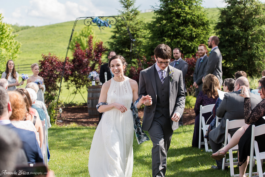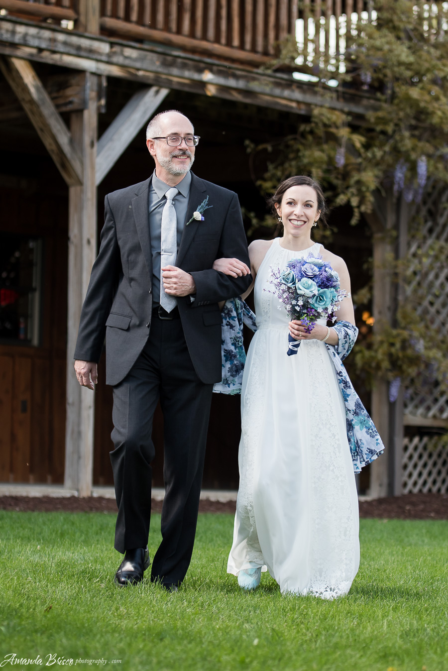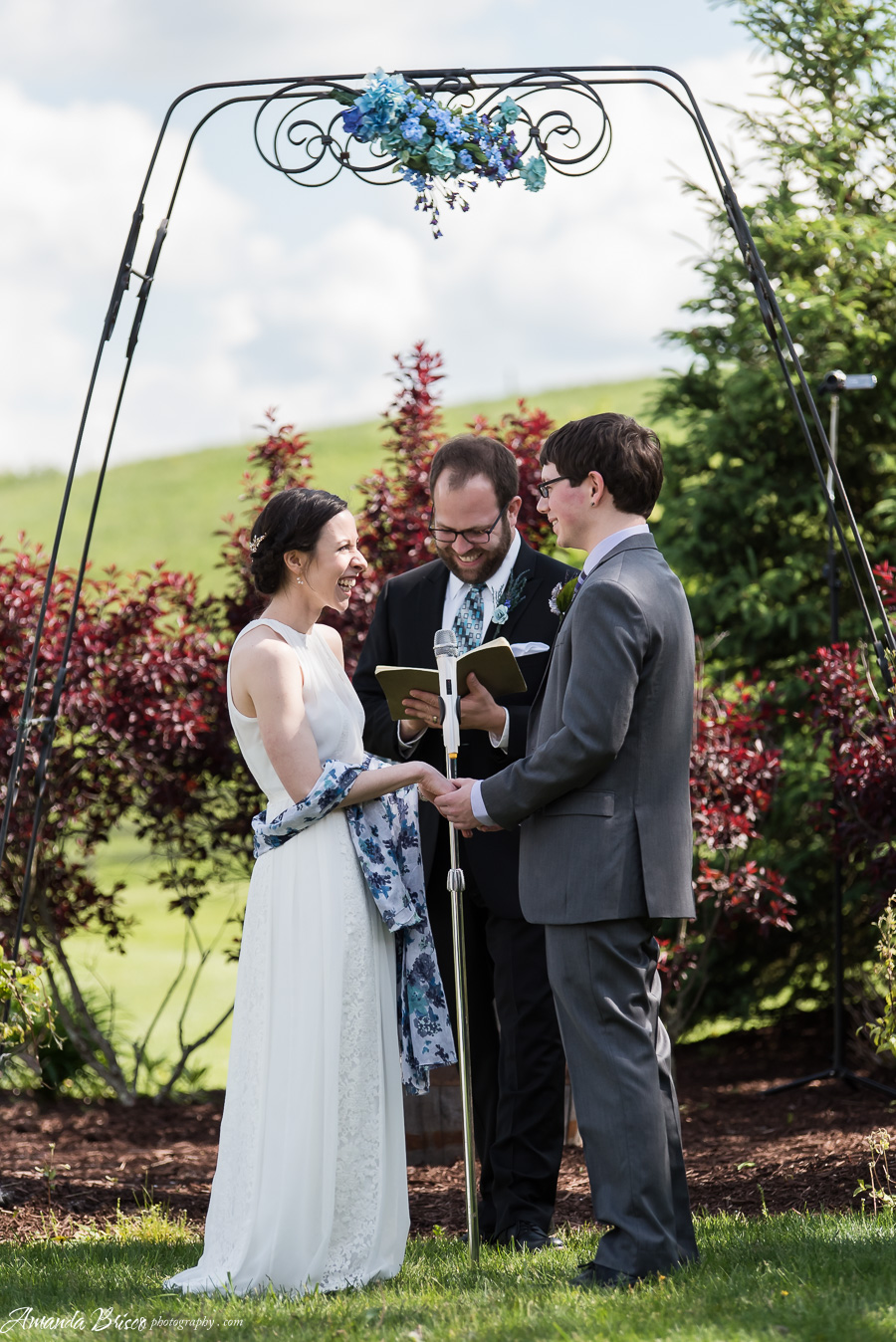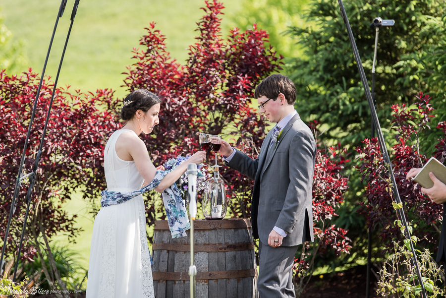We got married at Armstrong Farms Fieldstone in Sarver, PA, with our ceremony outside on the grounds and our reception in the barn. It’s a beautiful barn venue with farm houses on the property so you can stay the whole weekend! It totally fit with the vibe we wanted, which was just relaxed and casual… we wanted to focus on celebrating us as a couple, and we’re totally simple people. Good food, good music, dancing, and a fire to finish the night were just the ticket! They also have some farm kitties roaming the property, so you know… it couldn’t have been more perfect for us. 😉