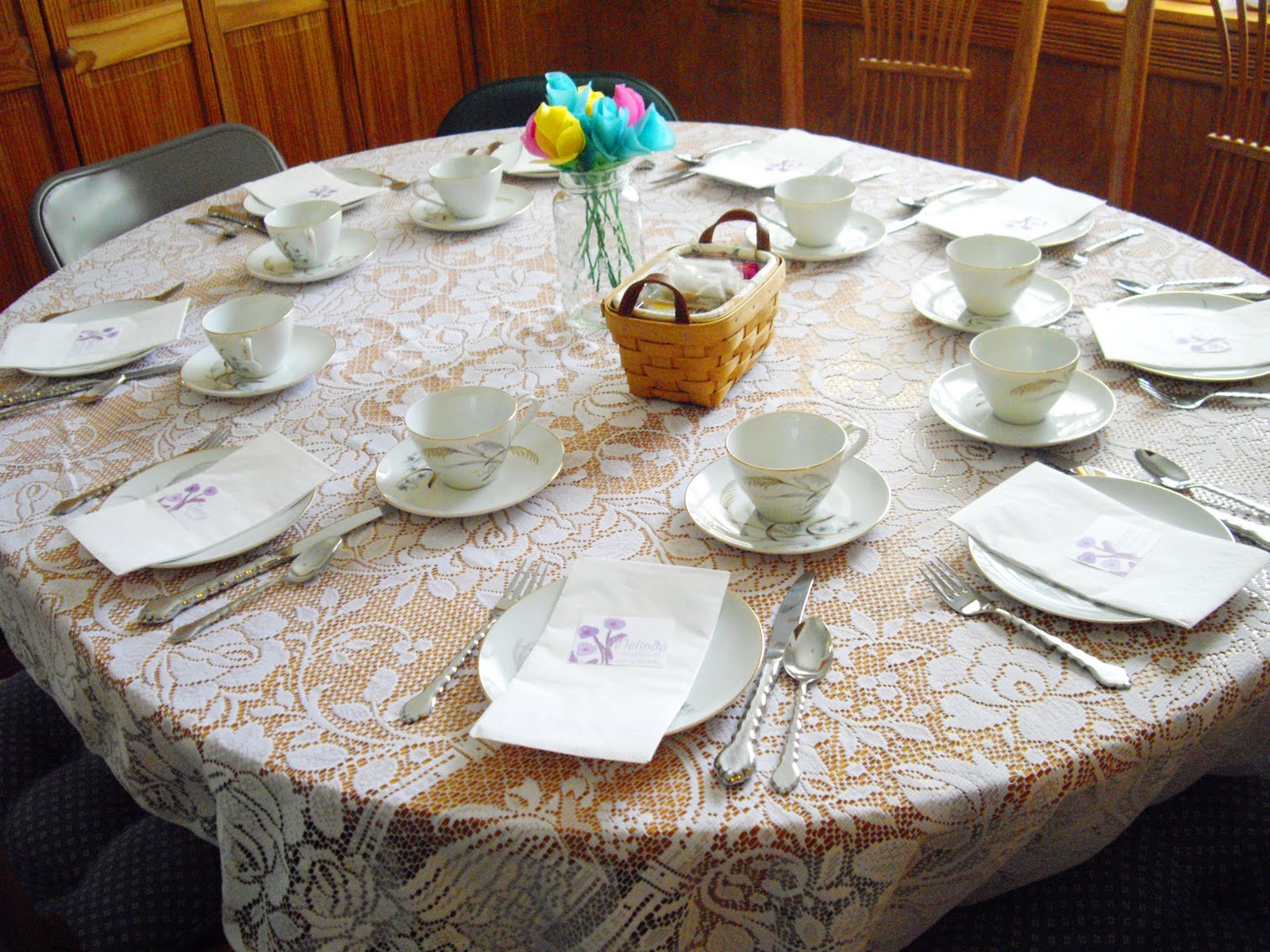 This past weekend, I threw a bridal shower for my sister with all of the other bridesmaids. It was tea party themed with lots of little appetizers and treats. I made all of the food except for a few salads and deviled eggs made by my aunt and my cousin. It was the first time I’ve completely catered a party of any sort, and it was so much fun. I planned it all out and froze everything that could be frozen (cookies, unfrosted cupcakes, bread, pretzel bites) two weeks ahead of time so I wouldn’t be racing the clock at the end. It was such a fun bridal shower, and everything went smoothly – the food was a hit! It was a lot of work, but it really paid off, and I had so much fun doing it! We had 23 people in total at the shower, so we all crowded around our two tables; it was tight, but I think it worked out decently enough!