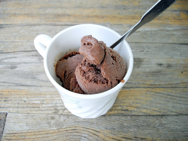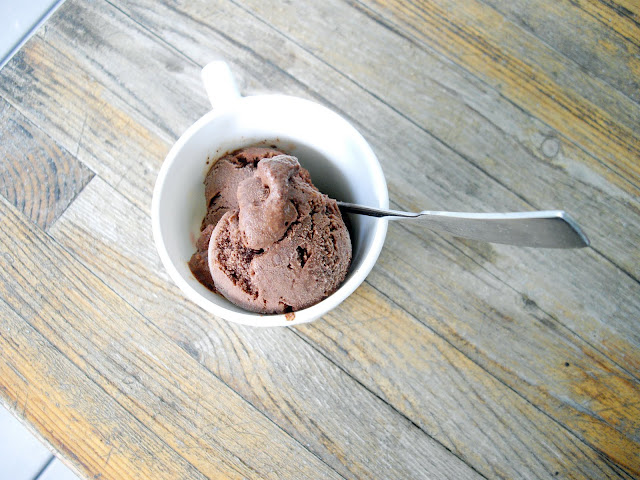 ¼ t instant espresso powderWhisk the cream, cocoa powder, sugar and salt together in a large sauce pan. Heat until it comes to a full boil, stirring frequently. Remove from heat and whisk in the dark chocolate until completely melted. Add the milk, vanilla and instant espresso powder. Blend for 30 seconds with either a blender or an immersion blender until smooth to prevent any grittiness from the chocolate. Place into a medium bowl and chill in the fridge for about 4 hours. Pour into your ice cream maker and freeze according to its instructions. Freeze until firm, about four hours.