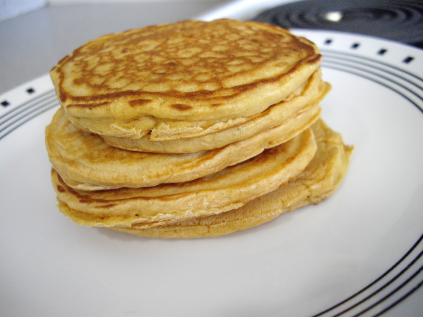 Alex’s stack!  I added half a packet of truvia to the batter this time to add some sweetness.  The recipe for the basic pancake batter is here.  Add about 6-7 blueberries to each pancake as you make them, so about 1 cup total for the whole recipe.  We made half a recipe here.