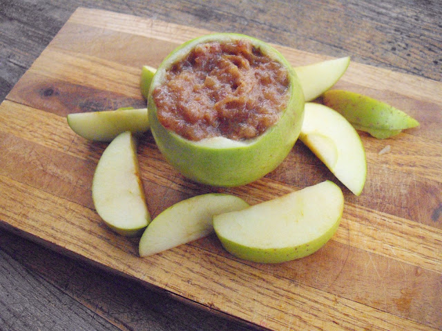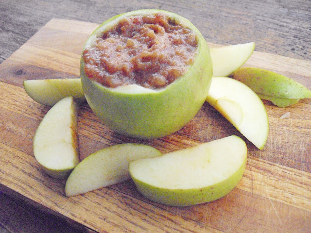 Since my mom loves dates, I thought this recipe would be best to save for when I was at home. It lived up to all the expectations I had for it; it tastes just like caramel, and the texture is even creamier. I had so much fun hollowing out the apple to use for a bowl, and it was even better eating it afterward (although I got my entire face covered in caramel..oops).